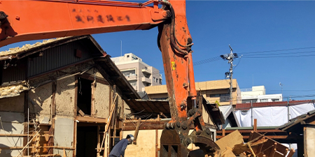一般住宅から大型物件まで、あらゆる建物の解体工事を行っています。工事にはそれぞれの建物構造に合った重機を使用しています。